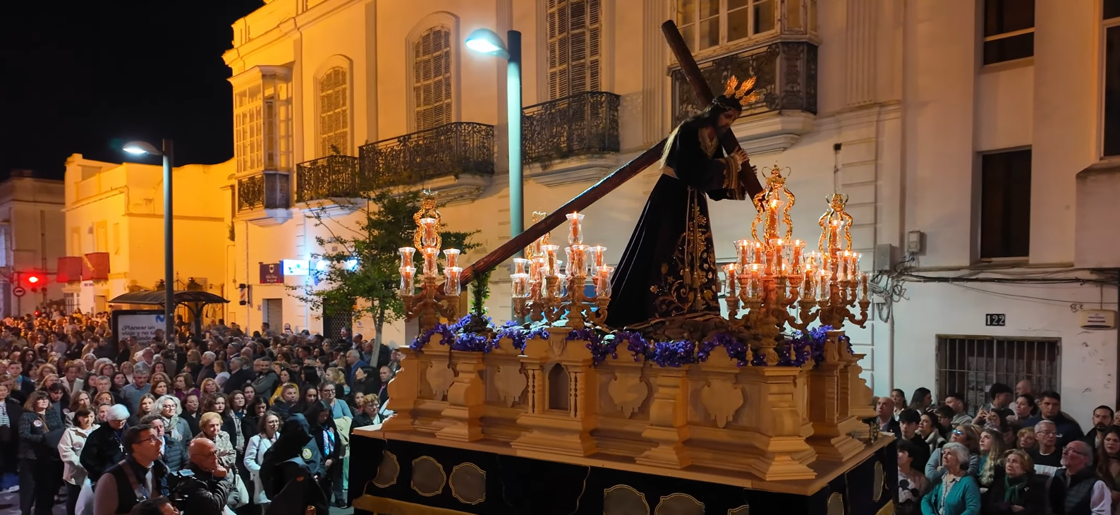 Procesionar con el Silencio en Sanlúcar es una experiencia que trasciende lo puramente estético. Históricamente vinculada a la Madrugada del Viernes Santo, la hermandad decidió en 2012 trasladar su estación de penitencia a la jornada del Jueves Santo. Este cambio permitió una mayor participación de los hermanos y una mejor integración en la liturgia del Triduo Pascual, sin perder ni un ápice de su esencia característica. El cortejo de nazarenos, vestidos con túnicas moradas y capas blancas, discurre por las calles en absoluto silencio, roto únicamente por el rachear de los costaleros y el sonido de las horquillas de los servidores.